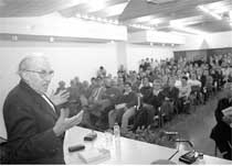 Y continuó: «Siendo español no se puede tener una posición neutra al hablar de España. Nadie puede ser neutral hablando de sí mismo». De hecho, tampoco Bueno aspira a la neutralidad. «Mi posición ante España es absolutamente partidista, aunque eso no significa inventarse la realidad», indicó el pensador, quien hizo gala de su combatividad con afirmaciones tan rotundas como ésta: «No se puede tolerar que alguien sonría ante quien plantea los problemas de España». |
