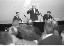 «El libro hace polvo multitud de mitos y tópicos», «Un filósofo español». Así definió ayer a Gustavo Bueno el profesor de Derecho Comunitario Europeo de la Universidad de Oviedo y ex vicepresidente del Principado, Bernardo Fernández. En su discurso de presentación del pensador y de su más reciente obra, Fernández destacó que Bueno es «el autor de un verdadero sistema filosófico, el materialismo filosófico», y que, además, «ha creado escuela, la "escuela de Oviedo"». |